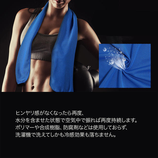 水に濡らして、絞って振れば何度でも冷たくなる、本格的冷感メカ二ズムスポーツタオル。