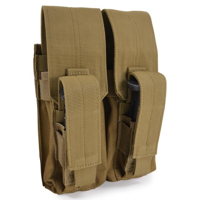 コンドル・アウトドア社の低価格・高品質なダブルAKカンガルーマグポーチ。AKライフルのマガジンとピストルマガジンが各2本ずつ収納出来ます。ピストルマガジンは、ダブルスタック、シングルスタックどちらでも週のする事の出来る設計。