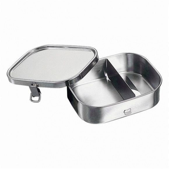 シンプルで丈夫な、工房アイザワのステンレス製 弁当箱 角型ランチボックスです。幼稚園の保温器で使用可能。おかずやご飯などに臭いや色移りが無いステンレスを使用し、シリコン製のパッキンにより密封性を向上させ、汁漏れなどしにくくなっています。弁当箱にはステンレス製の留め具を2箇所に設置し、取り外し可能な仕切り付き。ステンレスのシンプルなデザインは、老若男女問わずに、長く愛用していただけます。