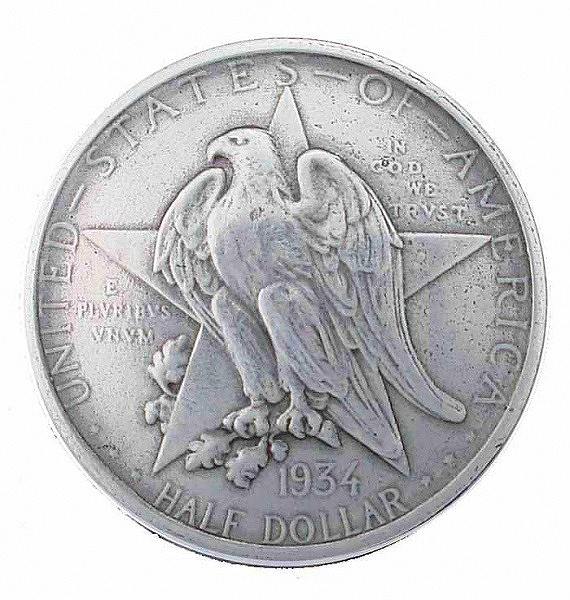 1934年のハーフダラー、テキサスの独立100周年記念のコインコンチョのレプリカです。裏面にシカゴスクリュー付き。[注]価格は1個のお値段です。