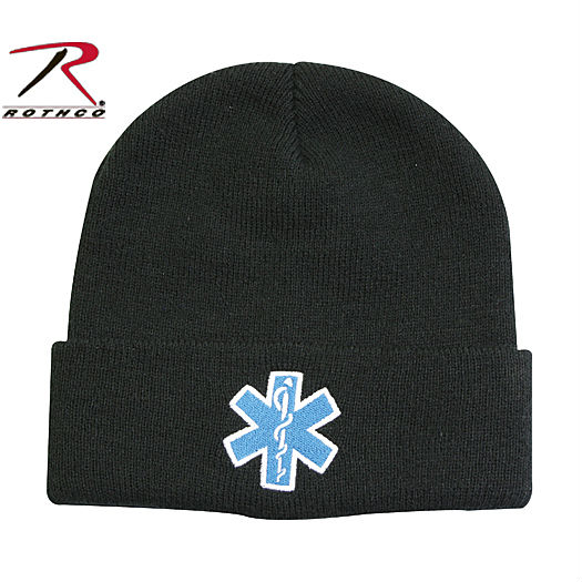 ミリタリーブランド、ロスコ社のアクリル製ニット帽子。帽子に刺繍されたスターオブライフは、アメリカを中心とした世界中で救急医療のシンボルマークとして使われています。