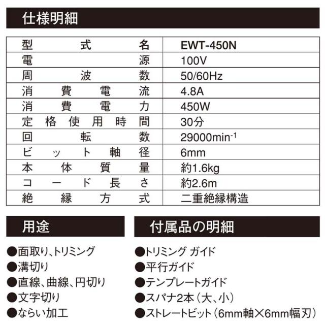 【E-Value コード式電動トリマー(木工用トリマー) 450W EWT-450Nの商品詳細】