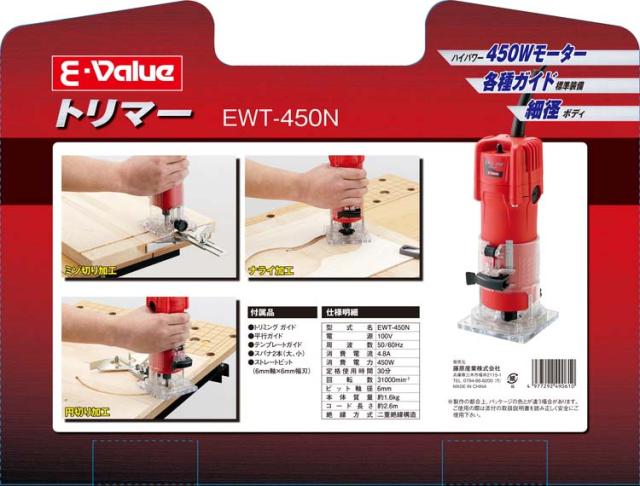 E-Value コード式電動トリマー(木工用トリマー) 450W EWT-450Nに関する詳細なお問合せは下記までお願いします