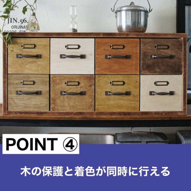 ・用途:無塗装木部の着色とつや出し(木部用ワックス)