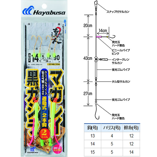 ハヤブサ 投げの達人遊動式2セットマガレイ・クロガシラ NB366 (投げ釣り仕掛け)