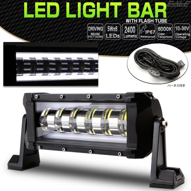 LEDライトバー 30W 8インチ フラッシュ リモコン付 FRシリーズ 2400ルーメン 防水IP67 ワークライト 12V 24V P-513
