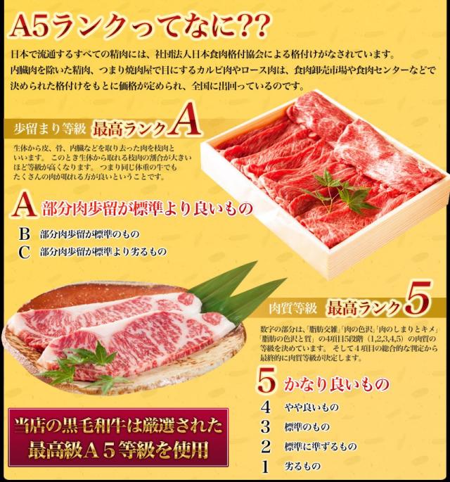 弊社和牛商品は、和牛の宝庫である九州産限定の厳選されたA5ランク黒毛和牛のみを使用。A4等級との違いをお客様の目でご確認ください、ご贈答、ギフトの場合は弊社オリジナル化粧箱で真心こめてお届けします。
