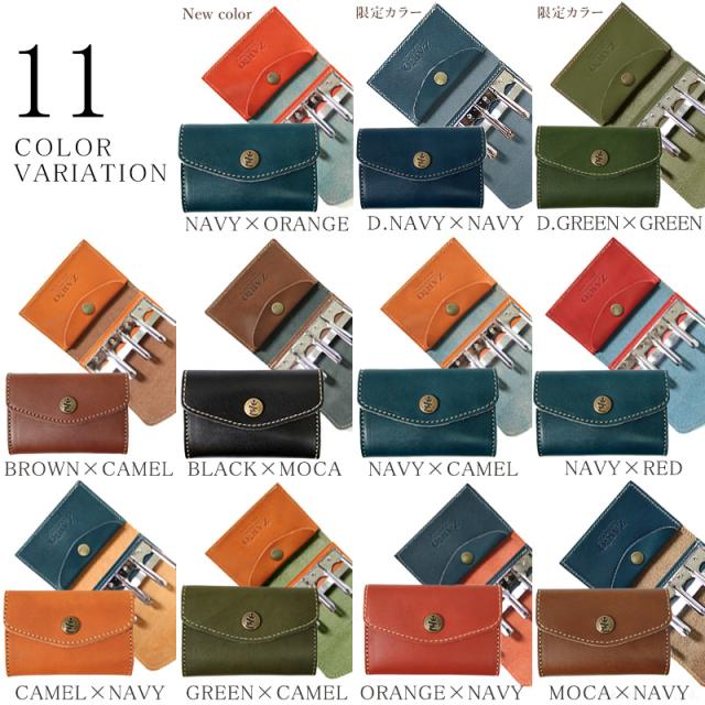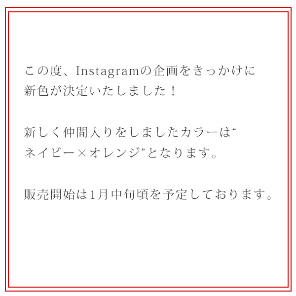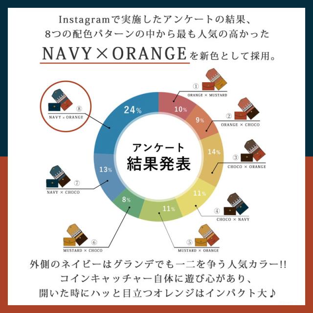 カラーはブラウン、キャメル、ブラック、モカ、ネイビー、レッド、グリーン、オレンジなど色鮮やかなカラーを組み合わせたバイカラー。