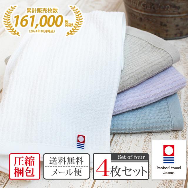 今治タオル フェイスタオル 4枚セット 送料無料 (即出荷) まとめ買い おしゃれ ギフト ブランド 綿100% 日本製 速乾 薄手 引っ越し 挨拶 タオル 出産祝い 内祝い 人気 ホワイトストライプ towel 安心 ポイント消化 毛羽落ちしない 圧縮タオル 携帯タオル wsf