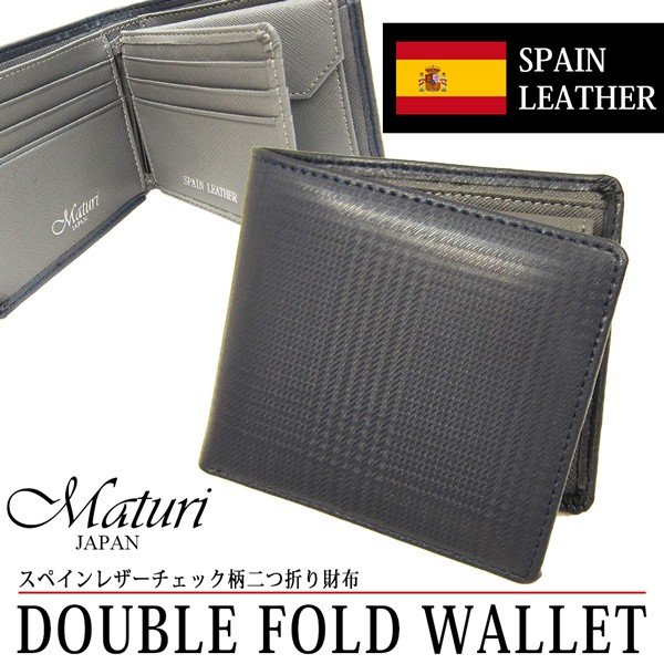 | 財布 メンズ 二つ折り財布 スペインレザー 牛革 チェック柄 Maturi マトゥーリ MR-073 |