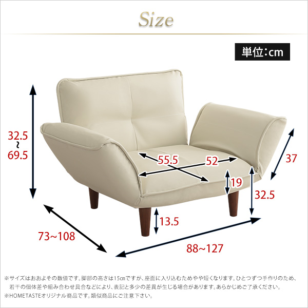 外寸:(約)幅 88〜127 × 奥行き 73〜108 × 高さ 19〜69.5cm