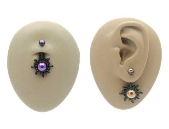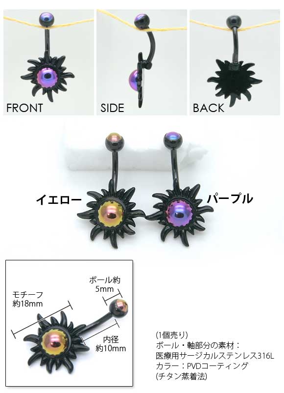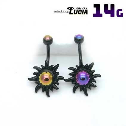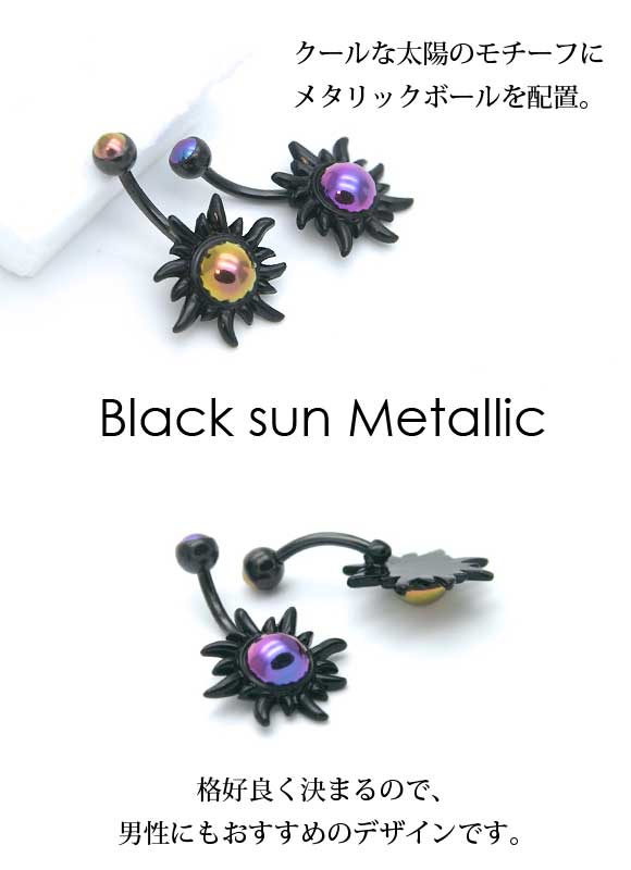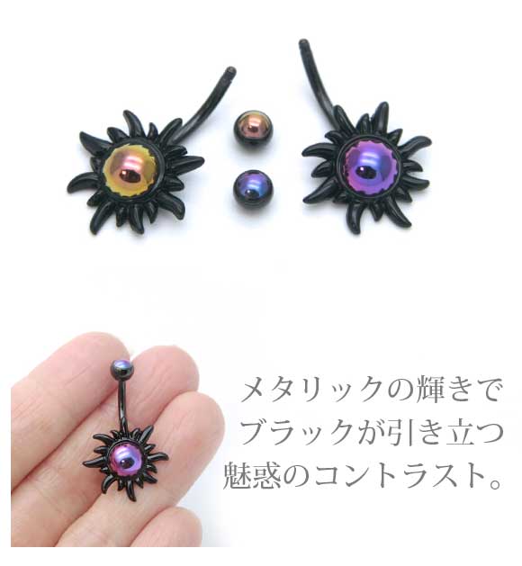 本日P2倍 14G ピアス ボディピアス へそピアス ブラック 太陽 メタリックボール 黒 メンズ かっこいい ユニセックス 金属アレルギー対応 316L 高品質