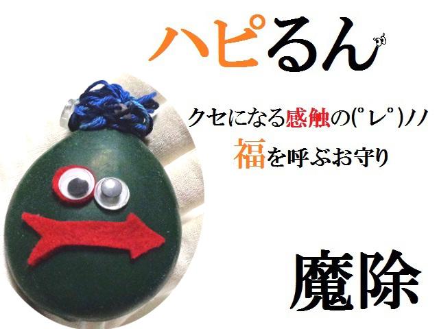 そしてハピるんの頭には、色んなご縁を結ぶボタンや、邪気邪念を祓うラインストーンも付いています。