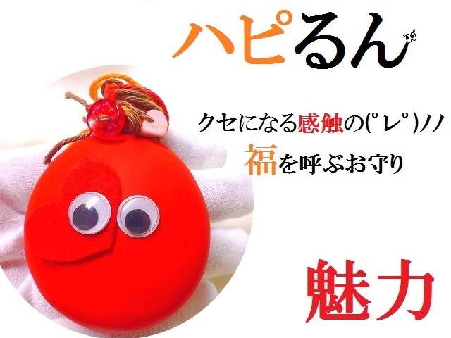 ハピるんは、ヨーロッパでは古くから作られている風船人形で、小麦の妖精と呼ばれており、福を招くお守りとされています。