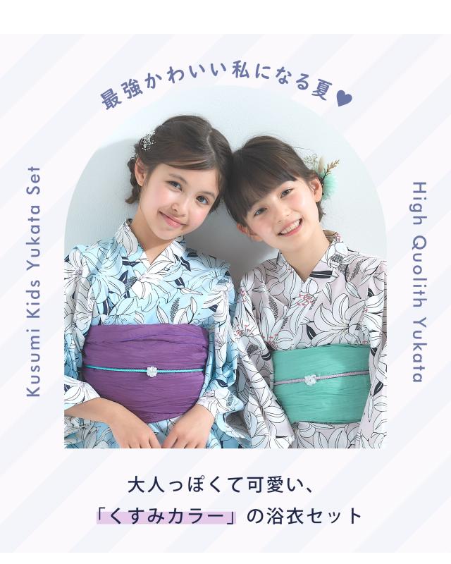 くすみカラーの浴衣にベストマッチなしわふわ兵児帯をセット。ボリューム満点&アレンジ自在のしわへこで可愛さUP。大人顔負けのおしゃれ浴衣です!生地は吸湿性に優れた綿100%を使用しています。浴衣の可愛さを引き立てるしわふわ兵児帯がセット。モデル画像のままの雰囲気でお届けになります。兵児帯は6色から選べます。ベストなコーディネートをお楽しみ下さい。◆セット内容(3点セット)・浴衣・兵児帯 : 6色から選べます。・下駄◆浴衣サイズ(3サイズから選べます。)・110cm(適応 : 5-6才/110-120cm)・120cm(適応 : 7-8才/120-130cm)・130cm(適応 : 9-10才/130-140cm)◆浴衣スペック・素材:綿100%◆OPTION MENU・ピンポンマム・・・+299円〜セット出来ます。 ・着付けセット・・・2399円でセット出来ます。※ご注文後に手動で値段を訂正させて頂きます。 オプションの場合、ピンポンマムのお色はお任せとなります。