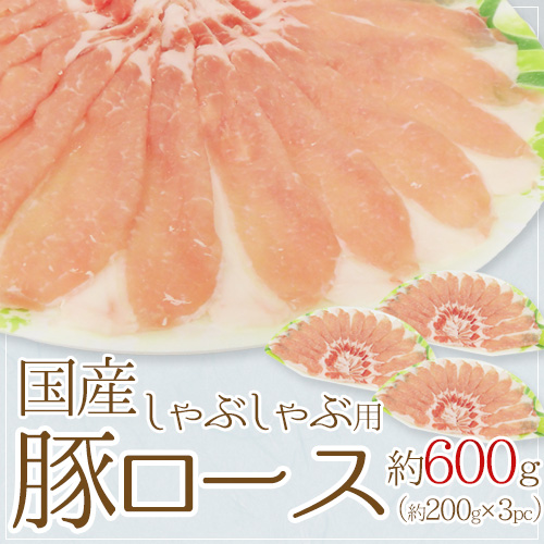 国産 ”豚ロース しゃぶしゃぶ用” 約600g(約200g×3pc)