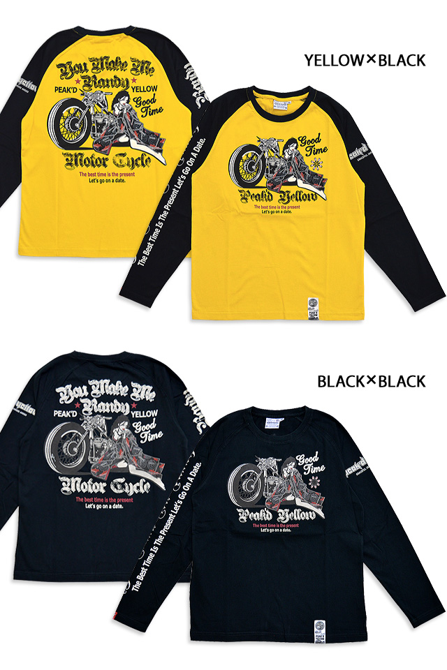 BIKE長袖Tシャツ Peak'd Yellow ピークドイエロー PYLT-204 和柄 和風 着物 姉御