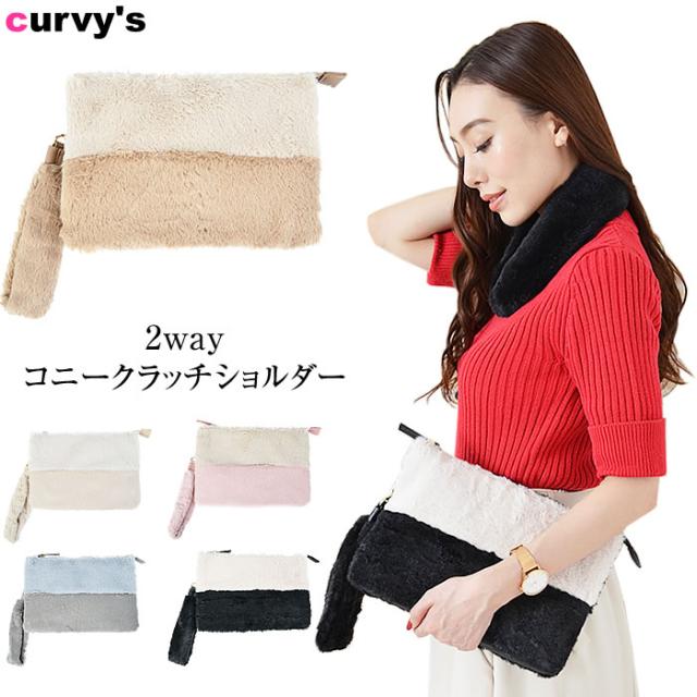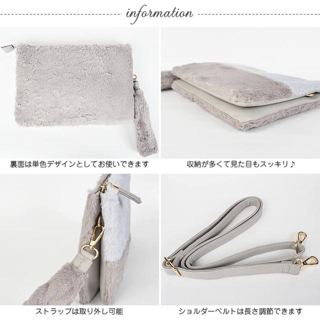 ファーバッグ 宅配便配送 ファーバッグ レディース ファー バッグ クラッチバッグ クラッチバック ショルダーバッグ ショルダーバック クラッチ ショルダー バッグ 鞄 カバン bag ファー バイカラー コニークラッチショルダー