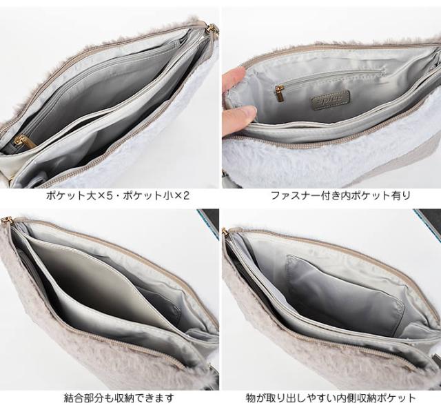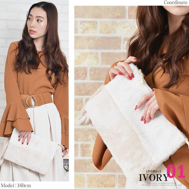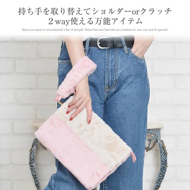 ふわふわエコファーが肌触り良く気持ち良いフェミニンなクラッチバッグです。