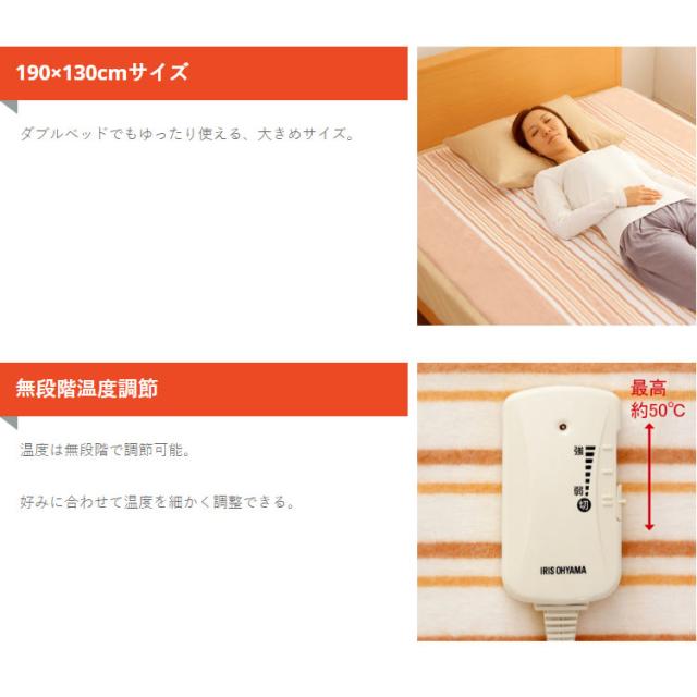 電気毛布 敷き 190×130 洗える 洗濯OK 電気敷き毛布 電気 敷き毛布 敷毛布 省エネ 無段階 温度調節 簡単 操作 ダニ対策 毛布 薄い 薄手 冬 暖かい あったか毛布 電気毛布敷き 敷きタイプ 電気しき毛布 EHB-1913 アイリスオーヤマ *