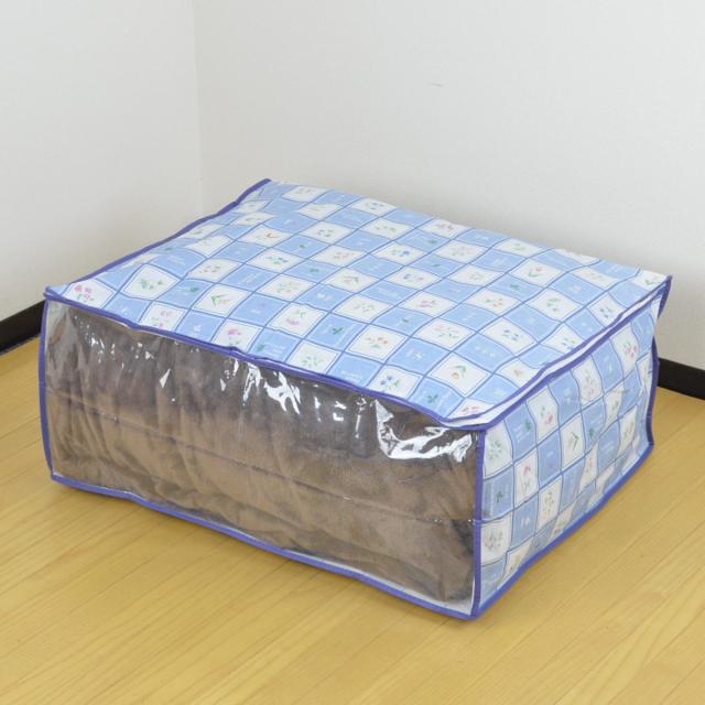 布団収納袋 毛布・タオルケット収納ケース 幅70×奥行55×高さ28cm ビオラ 透明窓付き 花柄 ( ふとん収納袋 布団収納ケース 布団 ふとん シングル 毛布 タオルケット 防虫 抗菌 不織布 上フタ開き 防臭 防カビ 防ダニ )
