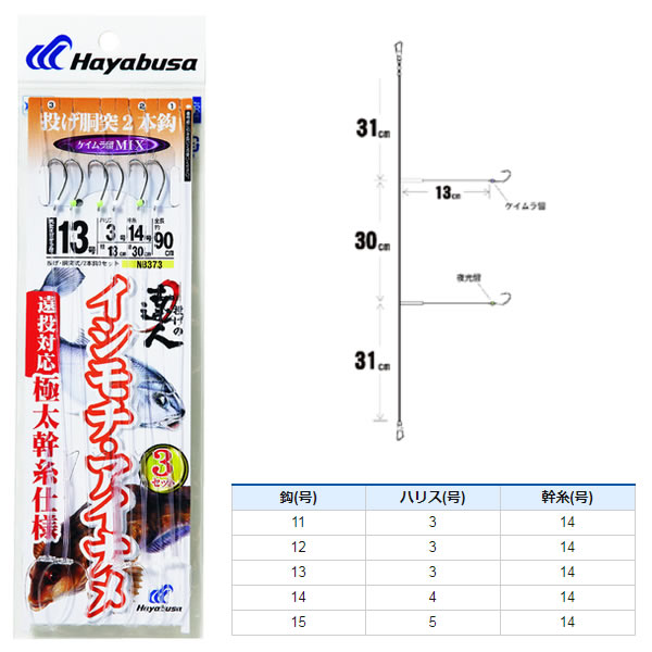 ハヤブサ 投げの達人 イシモチ・アイナメ五目 MIX留 NB373 (投げ釣り仕掛け)