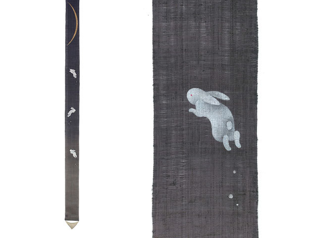 細タペストリー はねうさぎ 京都洛柿庵 送料無料 うさぎ ウサギ 兎 和インテリア 手描き 壁掛け 麻 インテリア 和風 四季 海外土産 秋