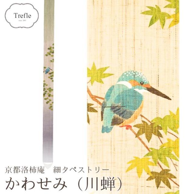タペストリー 細タペストリー 川蝉 カワセミ かわせみ 鳥 初夏 和インテリア 手描き 壁掛け 麻 インテリア 和風 四季 海外土産