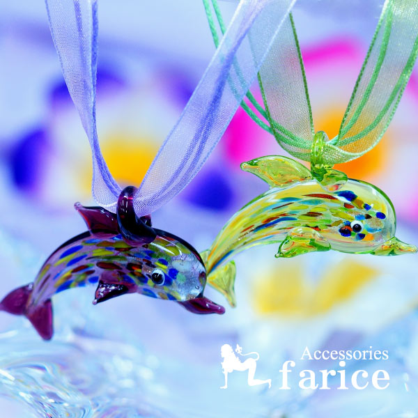 イルカ ドルフィン ペンダント ネックレス ガラス レース レディース 【紫/黄緑】