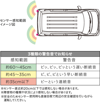 ※安全のためセンサー使用時も直接目視で周辺の安全確認を行いながら運転してください。