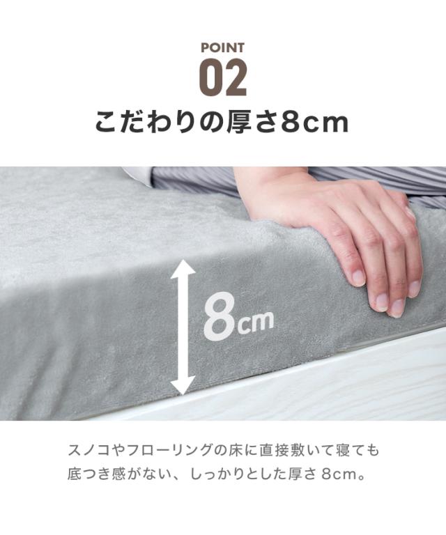 厚みが8cmあるので、そのまま敷いてもOK!マットレスや敷き布団の上に敷けばOK!