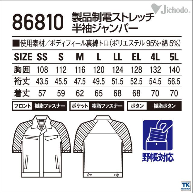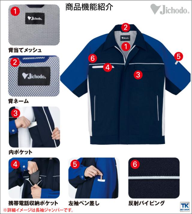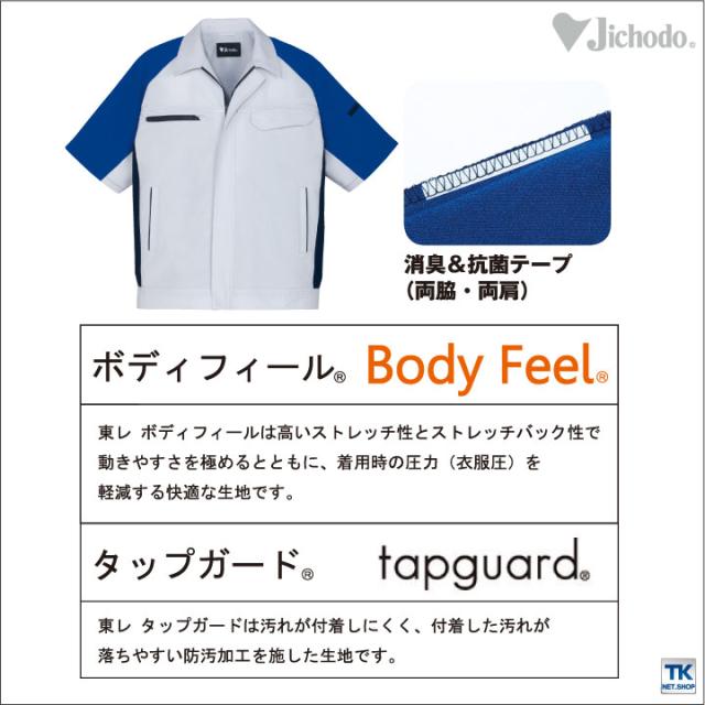 半袖ブルゾン ストレッチ 作業服 作業着 カラー 自重堂 カジュアルワーク 春夏 製品制電 東レボディフィール 作業ブルゾン ジャンパー 半袖 ジャケット jd-86810-b