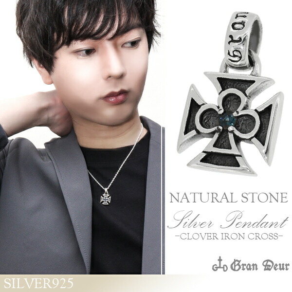 GRAN DEUR クローバー アイアンクロス ブルーサファイア シルバーペンダントトップ チェーンなし カットストーン ナチュラルストーン 天然石 クラブ