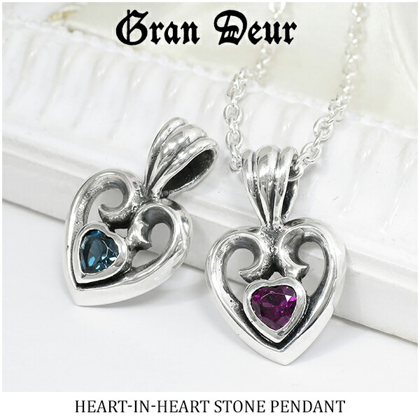 GRAN DEUR ハートインハート シルバーネックレス チェーン付きペンダントトップ ハート ロードライトガーネット ロンドンブルートパーズ 天然石
