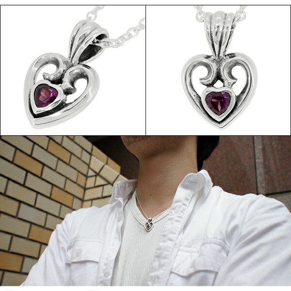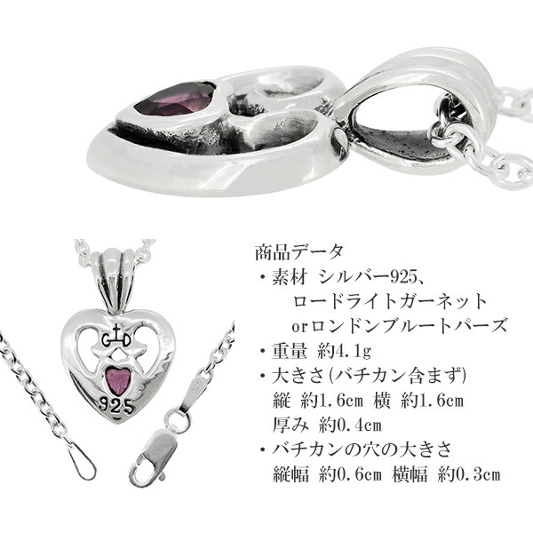 ハート ロードライトガーネット ロンドンブルートパーズ 天然石 シルバー925 メンズネックレス ブランド