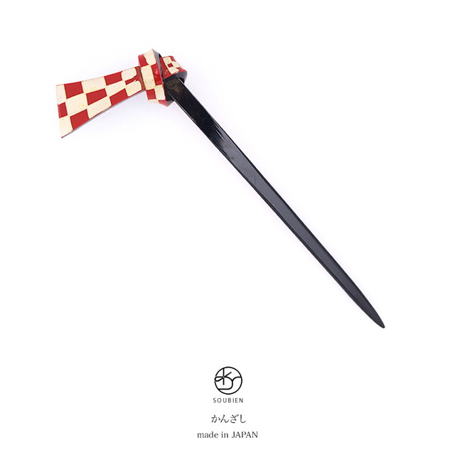 簪 かんざし 赤 レッド 黒 ブラック 金色 市松格子 レトロモダン 結び簪 小さめ 成人式 髪飾り 成人式の髪飾り向け 卒業式向け 浴衣向け ヘアアクセサリー 日本製 和装