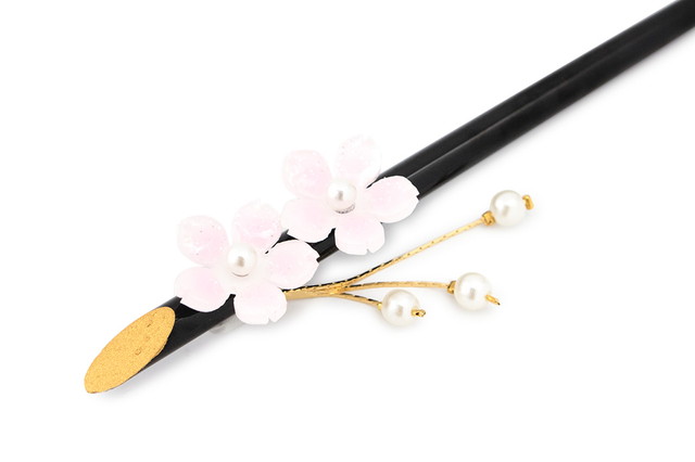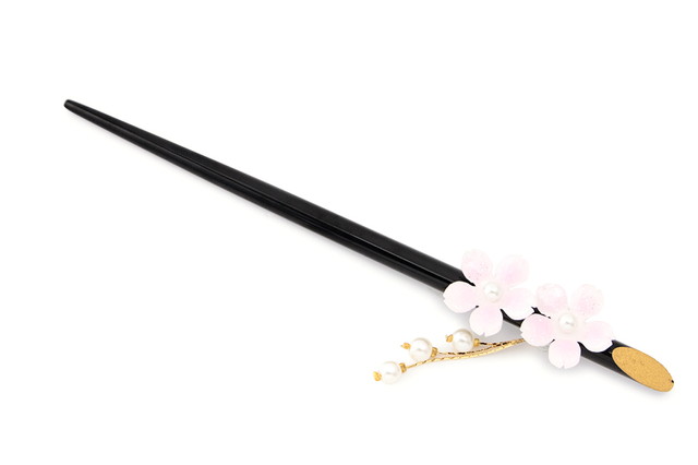 簪 かんざし ペールピンク 黒 ブラック パステルカラー 桜 花 ラメ フェイクパール ぶら飾り スティック シンプル 髪飾り カジュアル ヘアアクセサリー 日本製 和装