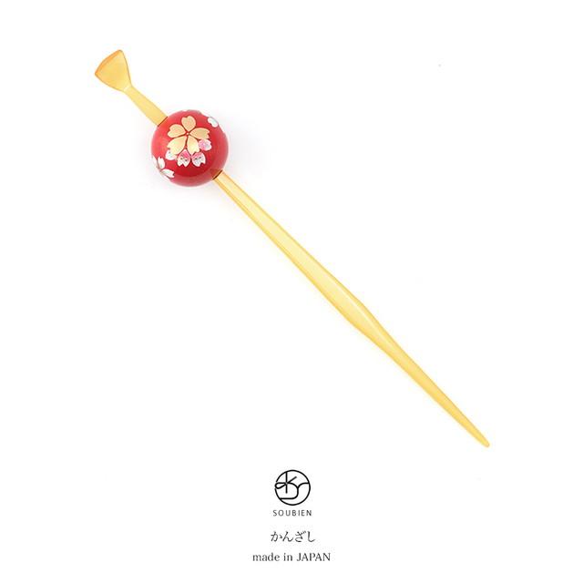 玉簪 かんざし 赤 レッド 飴色 イエロー 桜 花 玉飾り 大きめ シンプル レトロモダン 成人式 髪飾り 成人式の髪飾り向け 卒業式向け 浴衣向け ヘアアクセサリー 日本製 和装