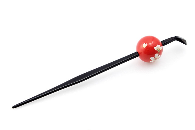 玉簪 かんざし 赤 レッド 黒 ブラック 桜 花 玉飾り 大きめ シンプル レトロモダン 成人式 髪飾り 成人式の髪飾り向け 卒業式向け 浴衣向け ヘアアクセサリー 日本製 和装