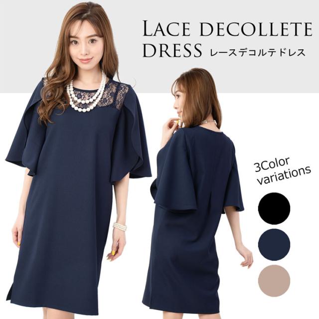 レース デコルテ ドレス フォーマル 5分袖 / レディース(No.08000121)