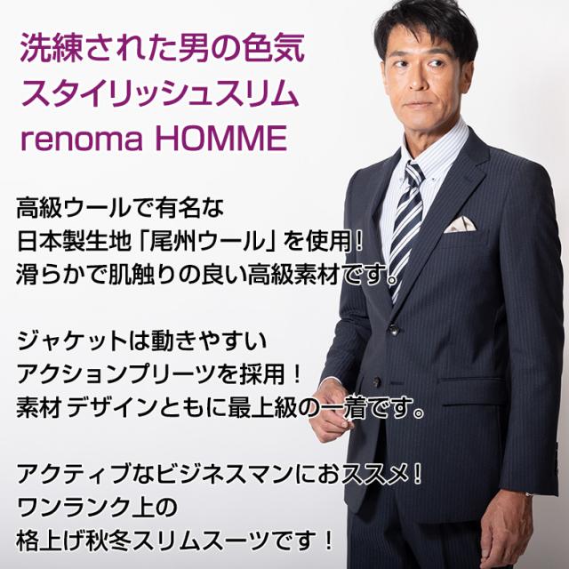 renoma レノマ メンズスーツ スタイリッシュスリム 秋冬 春 スリムスーツ ビジネススーツ ブランドスーツ