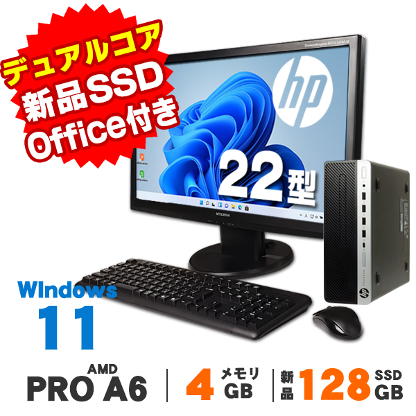 中古 デスクトップ Windows11 広々大画面 22ワイド液晶セット 店長おまかせデスク AMD PRO A6-9500 4GB 新品SSD128GB Office付き パソコン 中古パソコン