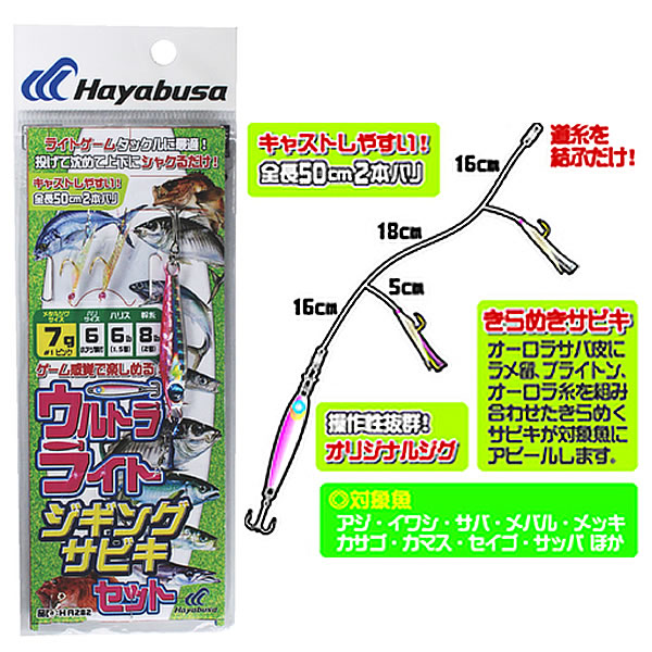 ハヤブサ 堤防ウルトラライトジギングサビキセット 2本鈎 HA282 (カゴ釣り仕掛け)