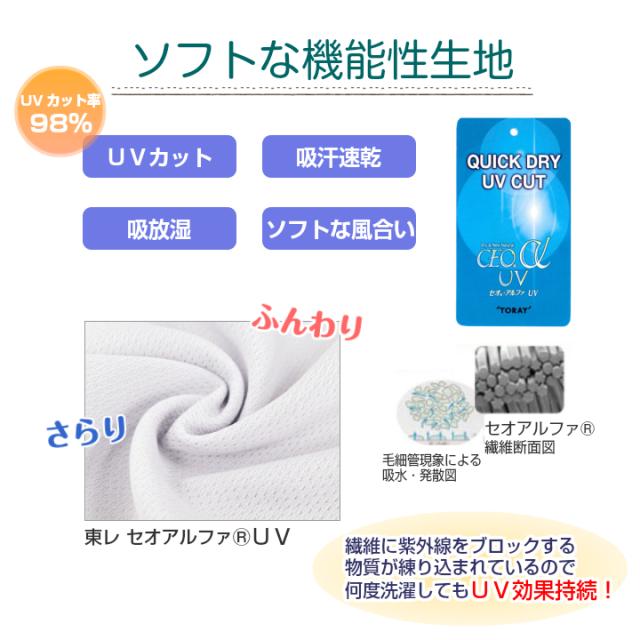 UVカット(上部98%以上)の高機能生地使用(吸汗速乾・放湿)