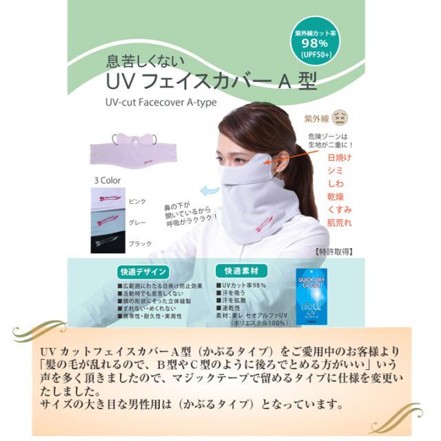 送料無料 息苦しくない UVカット フェイスカバー A型 紫外線対策 顔 フェイスマスク 日焼け防止 暑さ対策