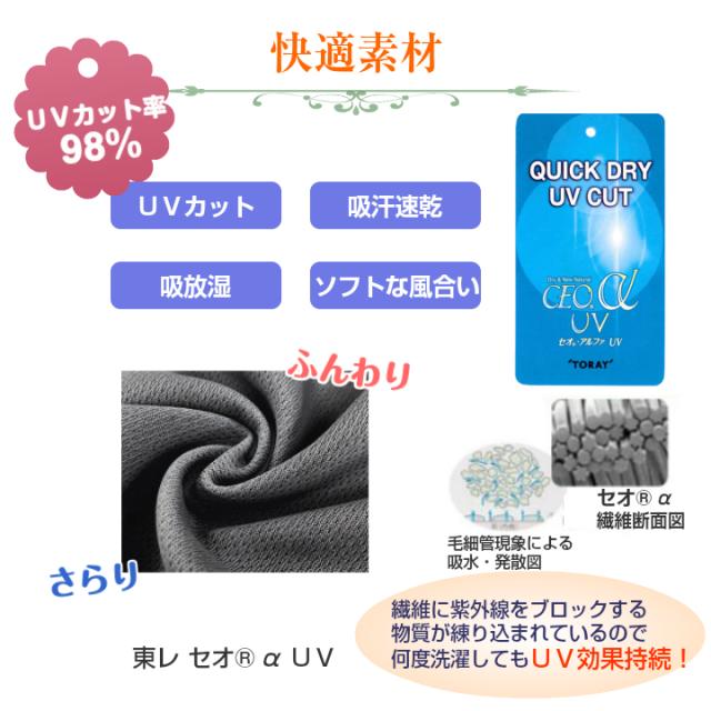 UVカット(上部98%以上)の高機能生地使用(吸汗速乾・放湿)