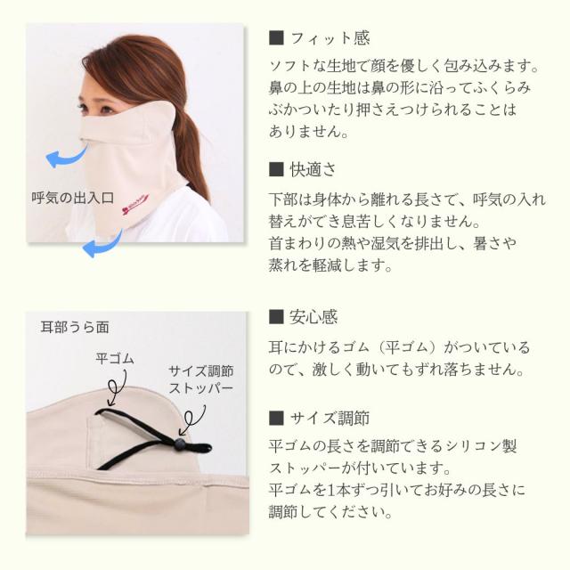 送料無料 息苦しくない UVカット フェイスカバー B型 フェイスマスク 紫外線対策 顔や首の日焼け対策 暑さ対策