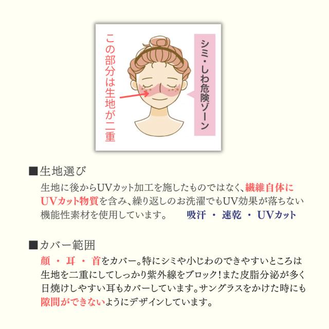 顔・首・耳…しっかり日焼けを防ぎます!