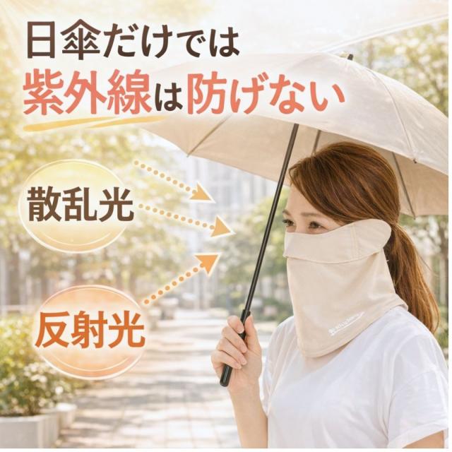 「直射光+散乱光」の両方を防ぐフェイスカバーでの対策が重要!