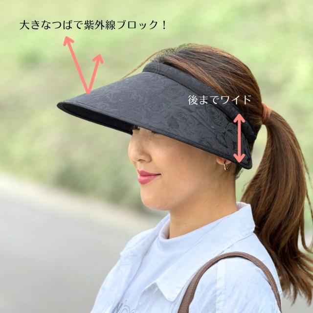 送料無料 つば広 UVカット サンバイザー UVカット率99%以上 紫外線対策 グッズ おしゃれなバラ柄 帽子 暑さ対策